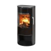 Schwarzer Stahl harmoniert hier mit schwarz umrandeten Glaspartien und dem schlanken, matt polierten Stahlgriff. Die großzügige Glastür ermöglicht eine Rundum-Sicht auf die Flammen. Sie lässt sich mit dem eleganten Griff leicht öffnen, der einen integrierten Teil der Glastür bildet. Fast lautlos schließt die Tür mithilfe des automatischen Schließsystems vollständig dicht.